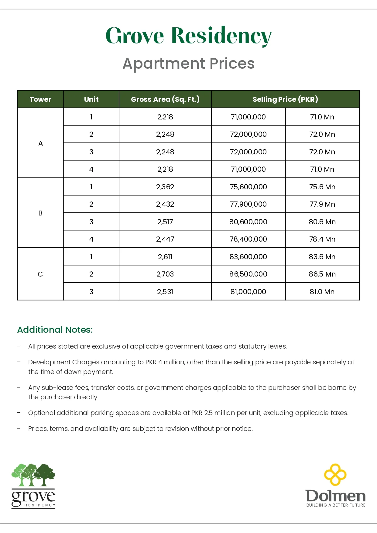 Grove Residency is a distinguished residential development by Dolmen Group, strategically located adjacent to the KPT Interchange at the entrance of DHA Phase 7 Extension, Karachi. Designed as a secure, vertically gated community, this project offers families a modern lifestyle that blends comfort, convenience, and connectivity in one prime address.