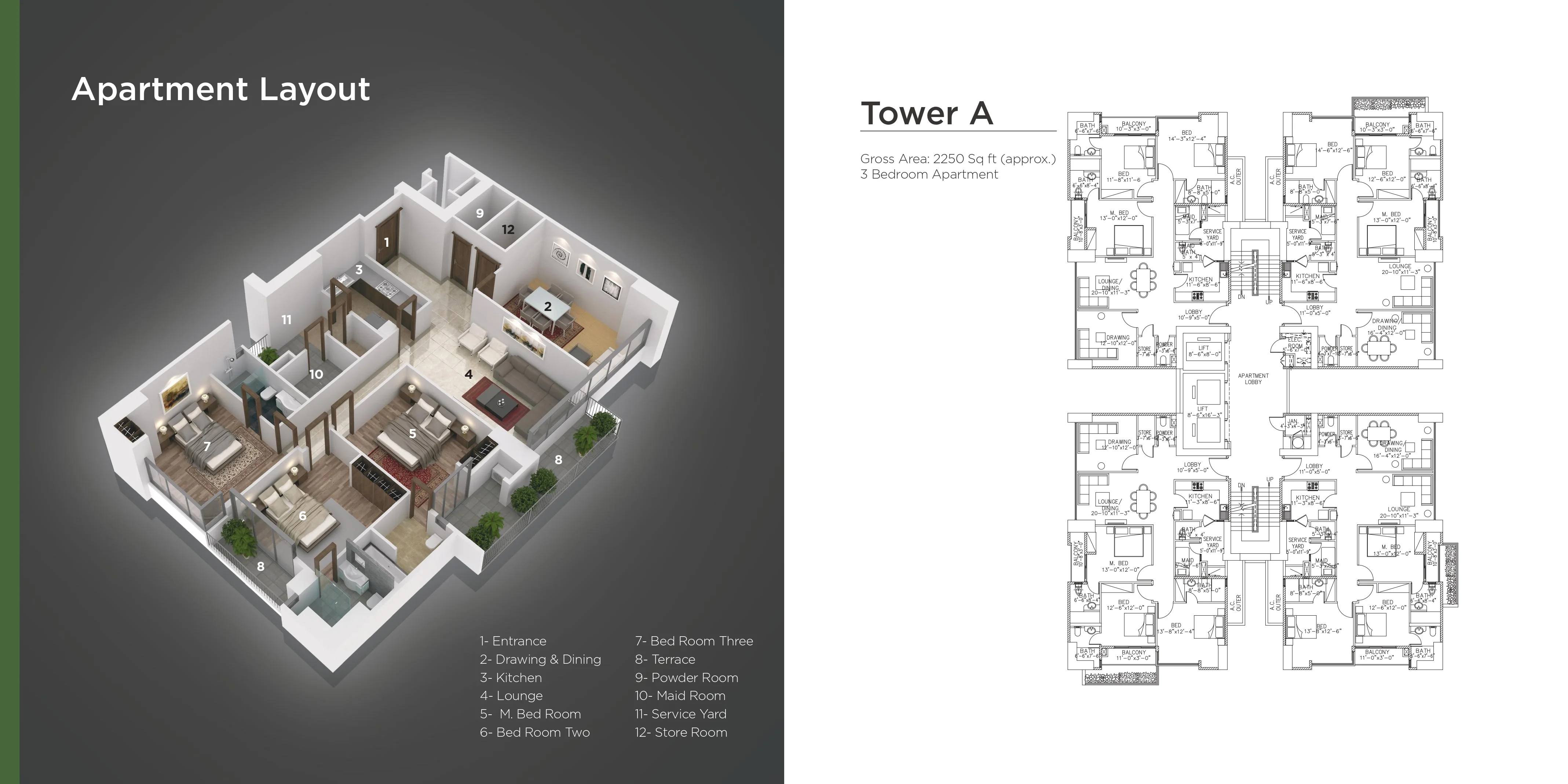 Comprising three residential towers, Grove Residency features spacious all‑corner 3‑bedroom apartments ranging from approximately 2,400 sq ft to 2,700 sq ft — each crafted for maximum natural light, ventilation, and panoramic views. With a limited number of apartments per floor and efficient layout designs, every residence feels open, airy, and well‑planned for contemporary family living.